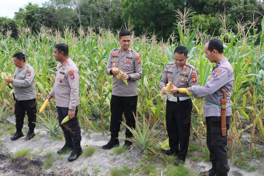 Kapolres Bartim AKBP Viddy Dasmasela menyampaikan apresiasinya pada kinerja dan langkah yang dilakukan Sat Binmas Polres Barito Timur untuk memanfaatkan lahan kosong ketahanan pangan Polres Bartim, yang mana sekarang sudah menuai hasilnya,